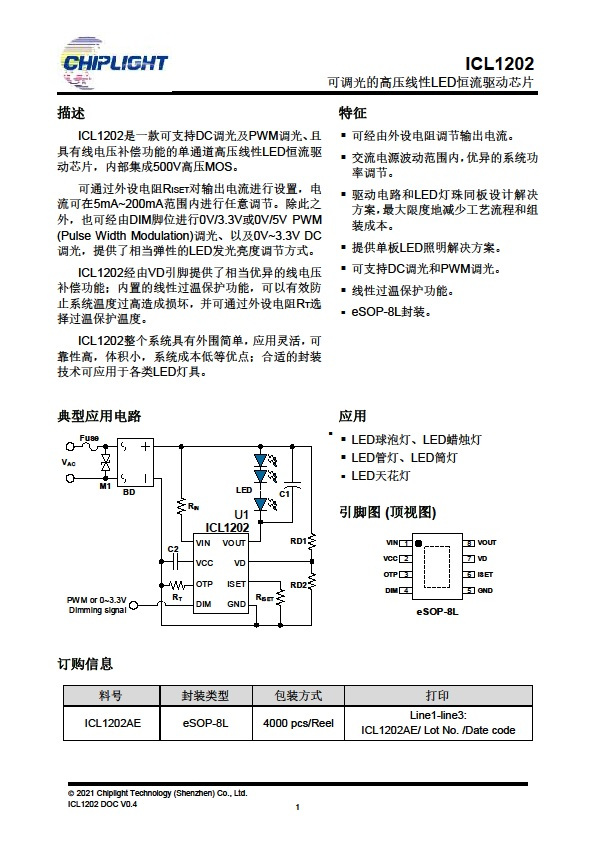 ICL1202B是一款可支持DC調(diào)光及PWM調(diào)光、